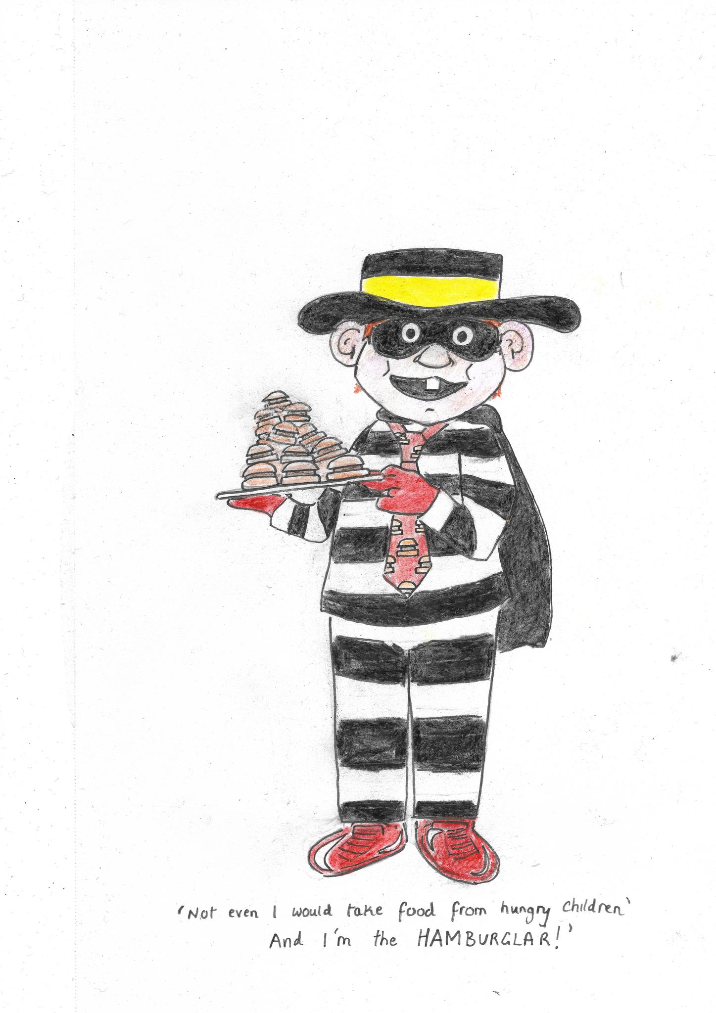 In this reality, instead of stealing from McDonalds customers, the Hamburglar is giving his hoard away. In contrast, instead of fulfilling a governmental duty to ensure that children do not go hungry, the Conservatives are taking food from them.